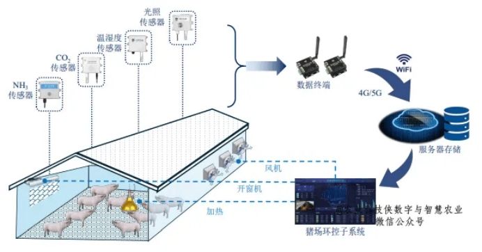 Li等人设计了一种基于轨道机器人的智能环控系统,该系统可监测轨道下方不同高度的温度、湿度、NH₃浓度、CO₂浓度、光照强度、H₂S浓度、粉尘浓度和风速等环境参数。相关人员在封闭猪舍内对该系统进行了测试应用,结果显示,该系统可维持温度在2℃以内波动,且各类气体浓度均控制在阈值以下。